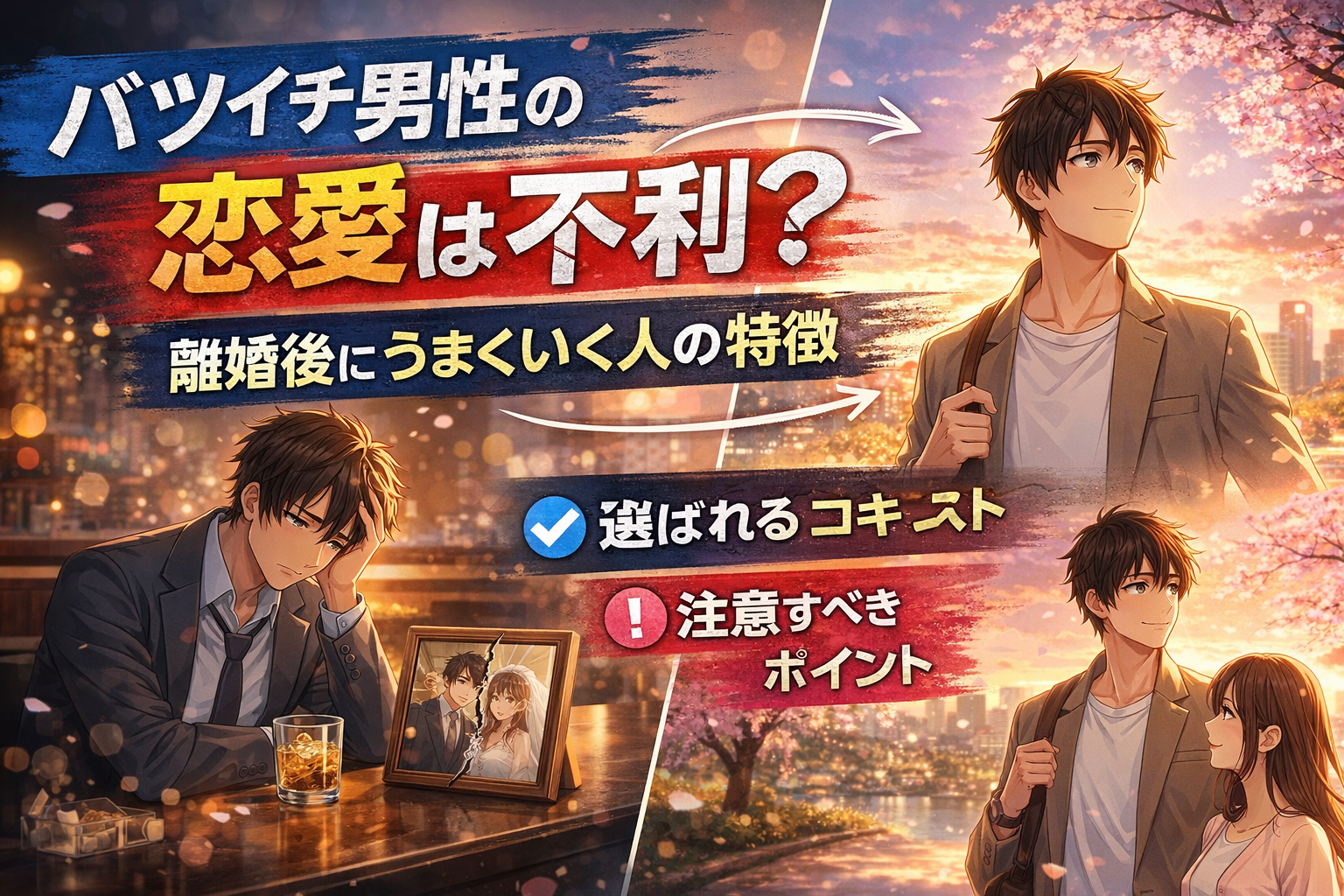 バツイチ男性の恋愛は不利なのか気になる方へ。離婚歴がある場合に見られるポイントや不安要素、恋愛を成功させるための考え方や行動を分かりやすく解説します。