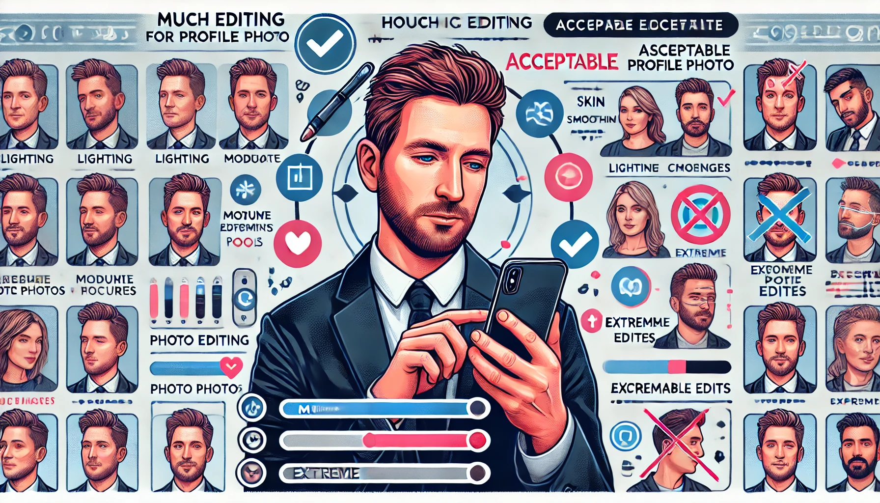少しの明るさ調整や肌の色味を整える加工は、多くのユーザーに好印象を与えます。血色をよくしたり、清潔感を出したりする程度であれば、むしろ歓迎される傾向にあります。