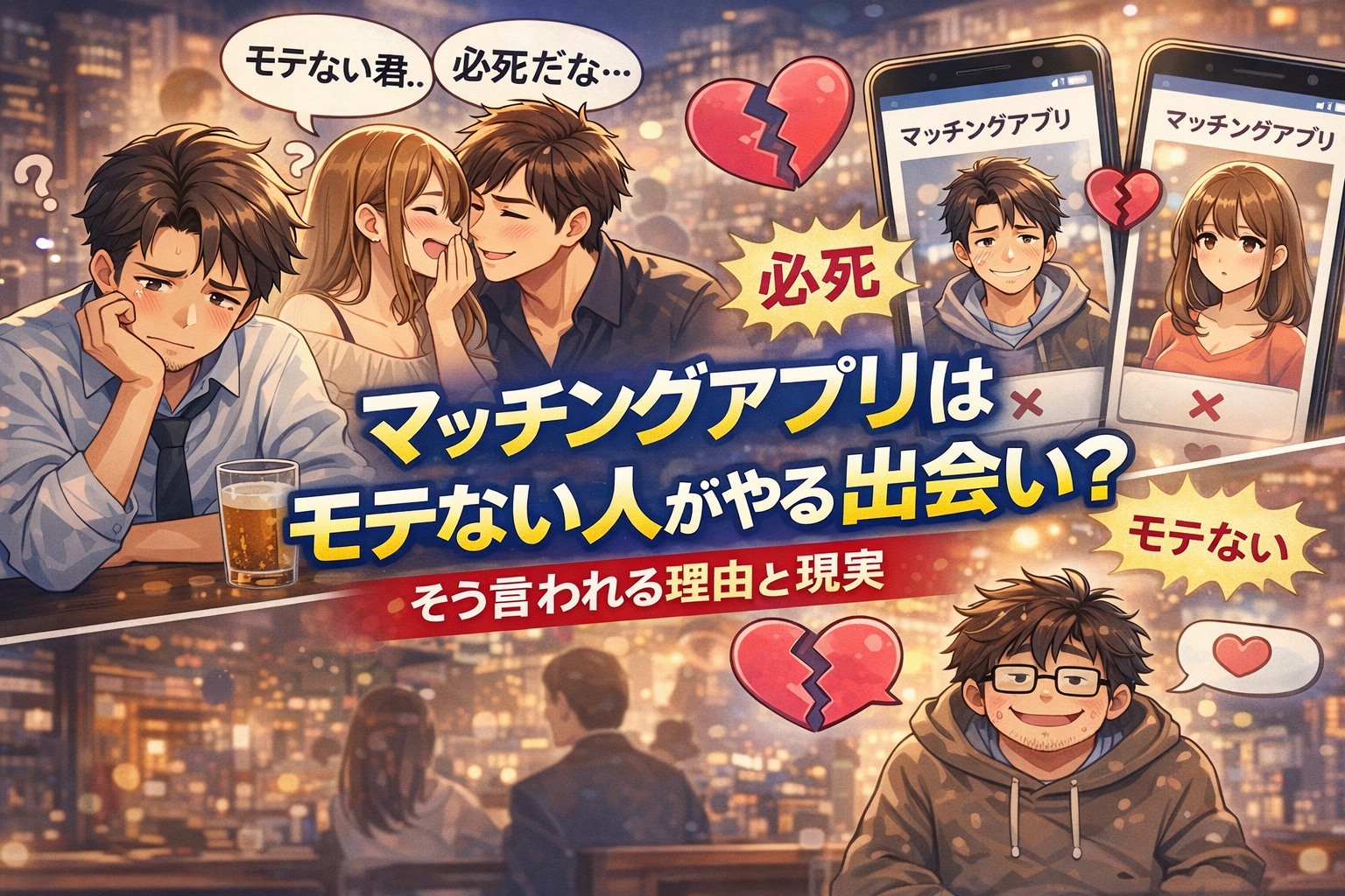 マッチングアプリは「モテない人がやる出会い」と言われがちですが、それは誤解も多い評価です。そう見られる理由や実際の利用者像、うまくいかない人に共通する使い方の問題点、出会いの質を高める現実的な活用法をわかりやすく解説します。